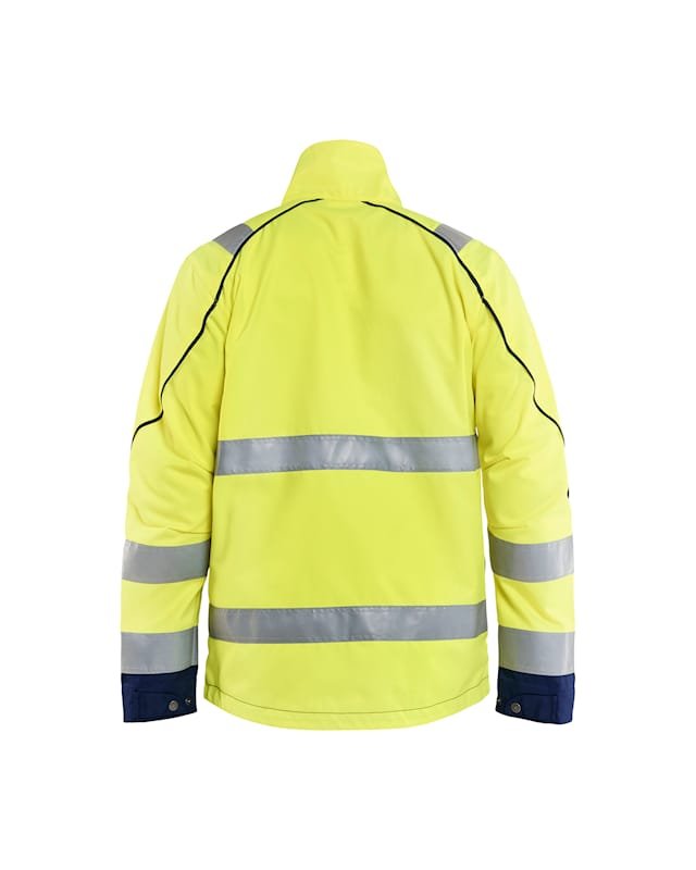 Industritvättbar varseljacka med modern passform som är designad för yrkesproffs som kräver hög synlighet, slitstyrka och enkel funktionalitet. Jackan är vattenavvisande, har en hög krage med täckt plastblixtlås och förlängt ryggslut för ökad komfort och skydd.